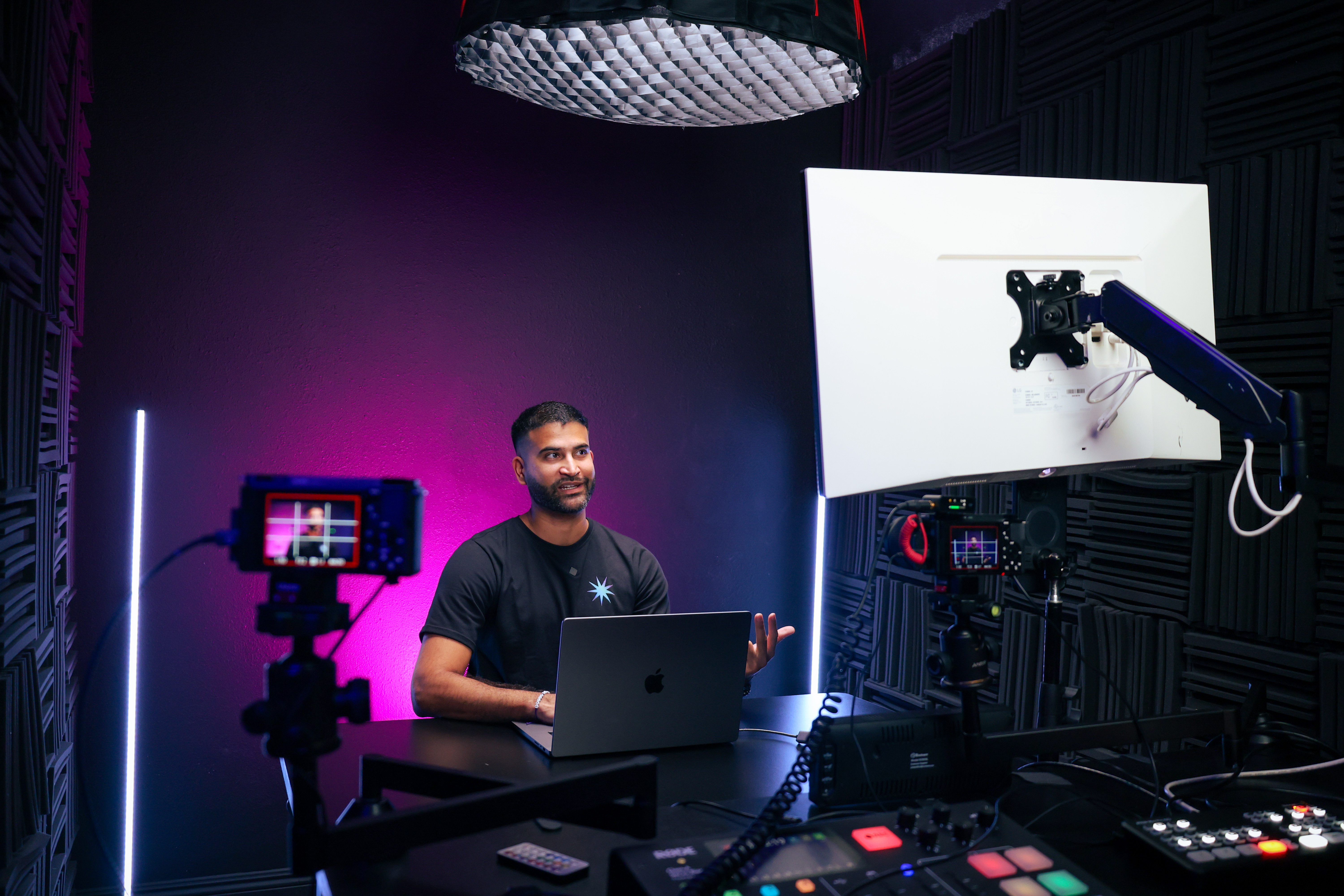 Access multiple studio environments to film different styles of content like podcasts, interviews, brand messaging, ads, and social media.