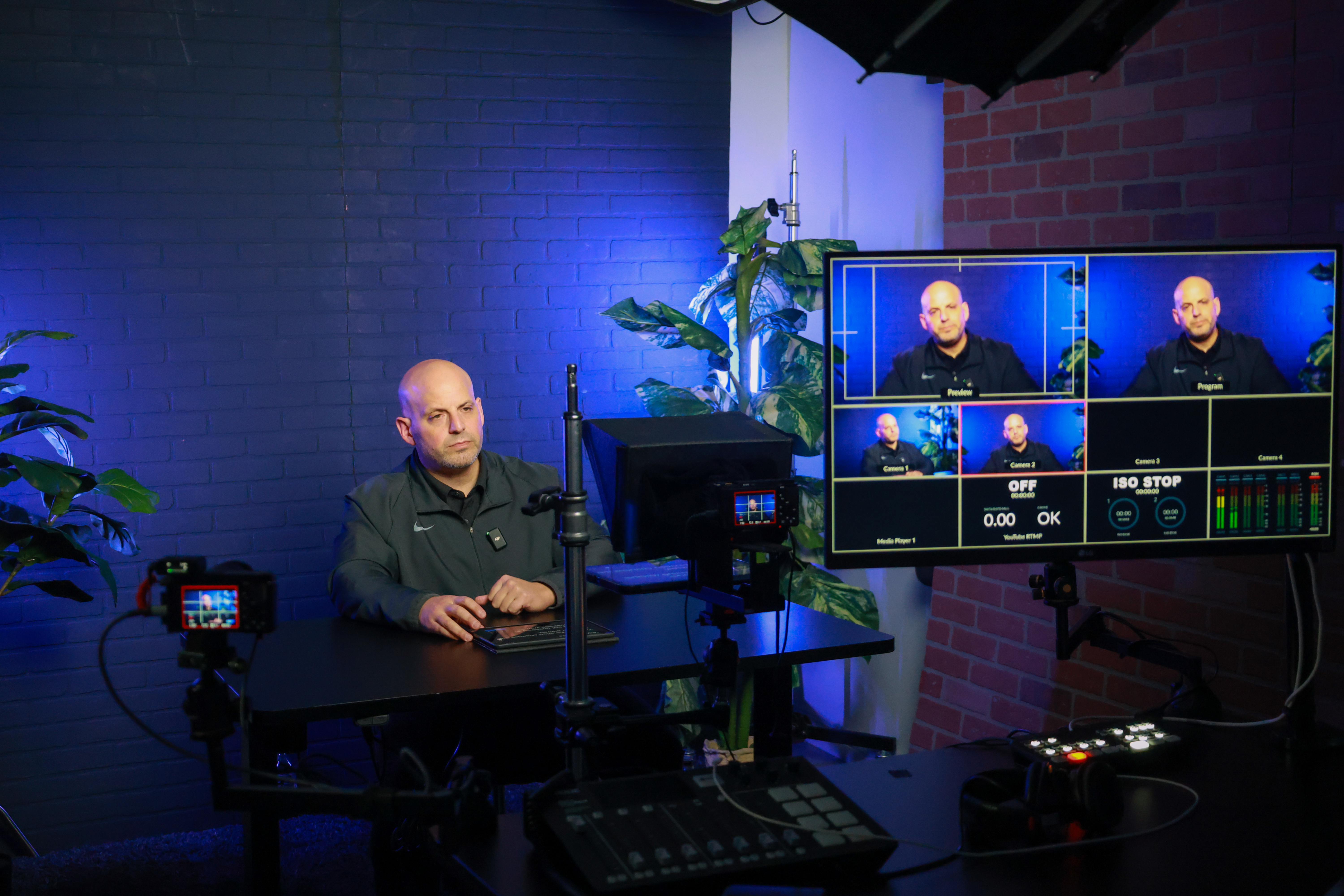A high-impact performance studio built for speed, clarity, and direct-to-camera delivery.