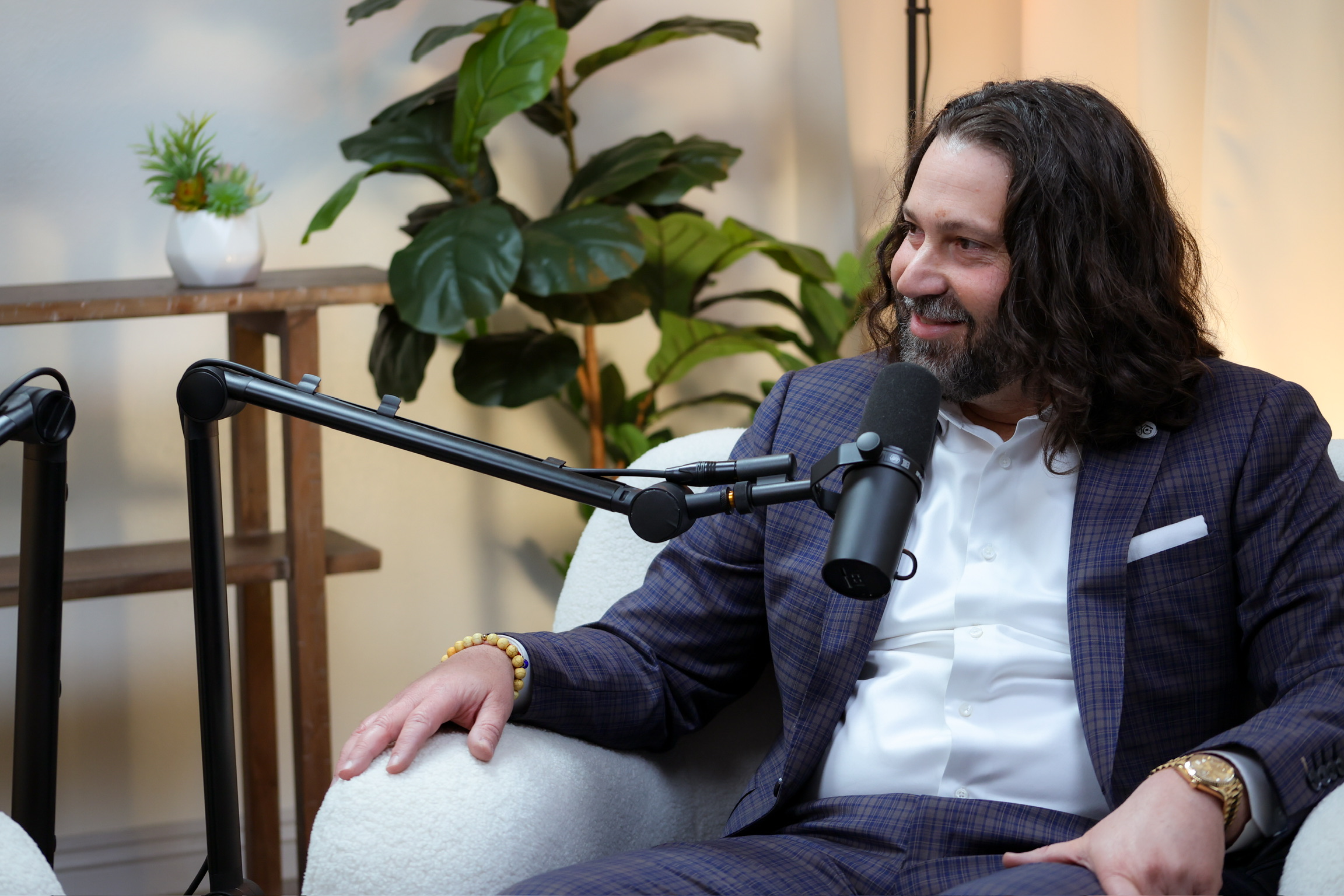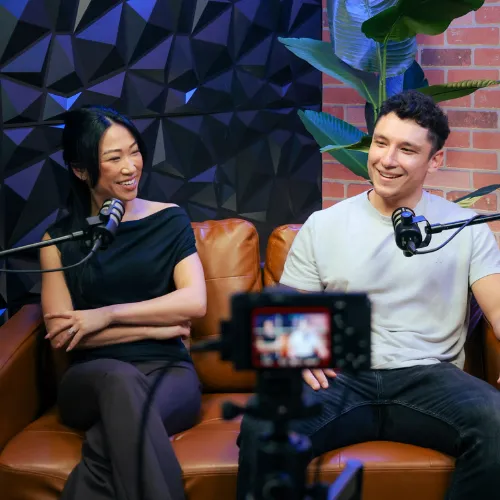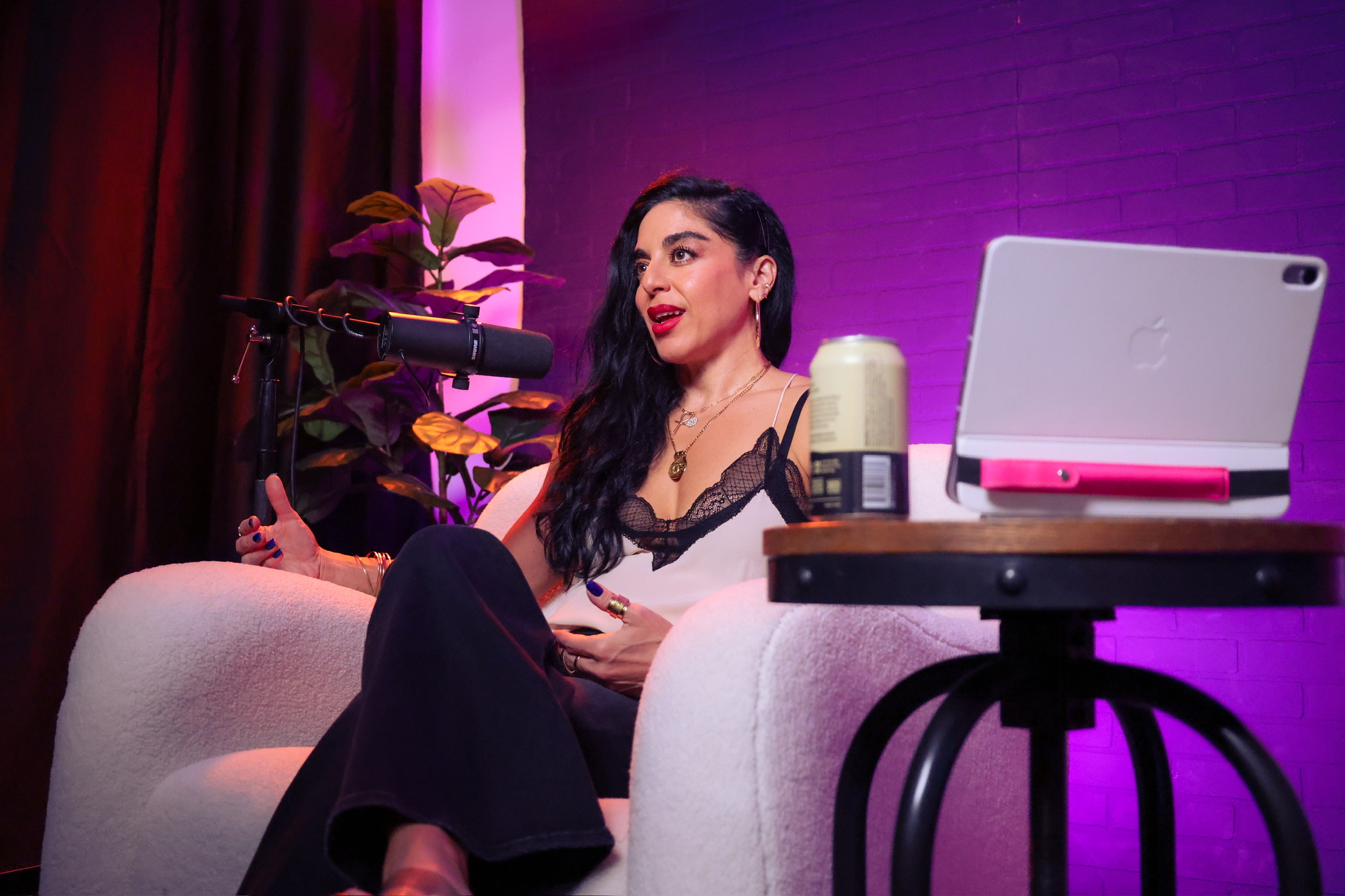 A bright, comfortable studio designed for natural conversations and long-form recording. Ideal for podcasts, interviews,